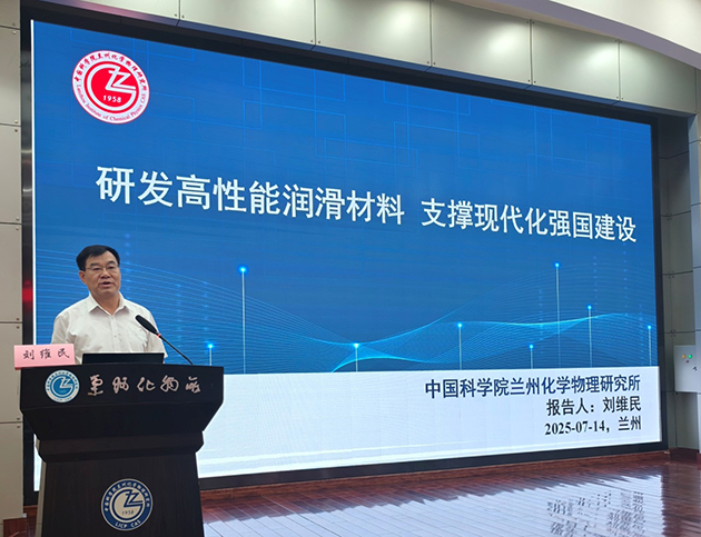 學(xué)術(shù)活動環(huán)節(jié),中國科學(xué)院院士、蘭州化物所學(xué)術(shù)委員會主任委員劉維民研究員作了題為“研發(fā)高性能潤滑材料 支撐現(xiàn)代化強國建設(shè)”的邀請報告。低碳催化與二氧化碳利用全國重點實驗室副主任崔新江、潤滑材料全國重點實驗室副主任王道愛、精細石油化工中間體國家工程研究中心副主任畢迎普、蘭州潤滑材料與技術(shù)創(chuàng)新中心副主任王廷梅、天然藥物與化學(xué)測量研究中心主任楊軍麗和資源化學(xué)與能源材料研究中心楊兵軍副研究員分別介紹了各自實驗室(中心)基本情況。