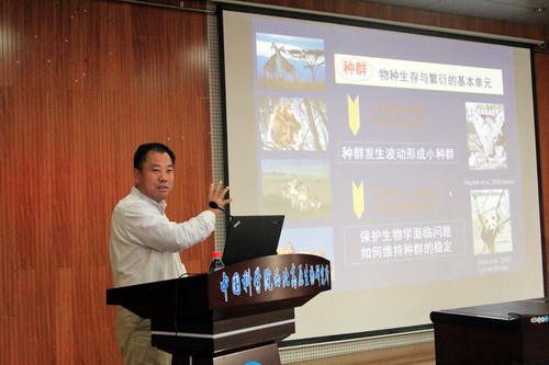 本次論壇共安排11個特邀報告。中國科學院院士、中國科學院水生生物研究所研究員桂建芳,中國科學院動物研究所研究員蔣志剛、王德華、雷富民、杜衛(wèi)國、詹祥江,西北大學教授李保國、中國科學院昆明動物研究所研究員施鵬、東北林業(yè)大學教授張明海、山東大學教授李玉春、西北高原所研究員楊其恩分別作了題為“多倍體銀鯽及其復合種的生態(tài)分布格局與演化歷史”、“未雨綢繆、亡羊補牢:量化中國哺乳動物滅絕風險”、“生理生態(tài)學與動物保護:學科地位與發(fā)展的思考”、“應對第四紀冰期和氣溫變化的鳥類譜系地理學過程”、“生態(tài)生理學與保護:以爬行動物溫度響應為例”、“Reference genome, population genetics and population genomics of wild falcons”、“環(huán)境變化下的秦嶺金絲猴社群結構”、“基因組時代下的生物多樣性資源挖掘”、“基于糞便分子生物學及3S技術的馬鹿家域研究”、“我國小型哺乳動物物種多樣性的低估與保護迫切性”和“配子體外生產(chǎn)技術在畜牧生產(chǎn)和野生動物保護中的應用潛力和挑戰(zhàn)”的報告。精彩絕倫的報告引起了與會代表的極大興趣,大家認真傾聽、踴躍發(fā)言,展開了熱烈的交流與討論,現(xiàn)場氣氛異?;钴S。