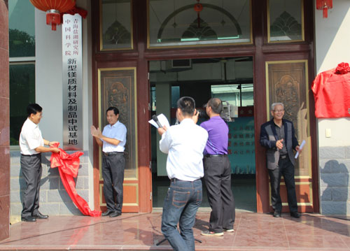 張金初、段東平、支洋波和肖學(xué)英代表雙方進(jìn)行了“新型鎂質(zhì)膠凝材料工程技術(shù)聯(lián)合研究中心”和“新型鎂質(zhì)材料及制品中試基地”的揭牌。揭牌儀式結(jié)束后,來賓參觀了板材生產(chǎn)線和新型海工鎂水泥試驗(yàn)場地。