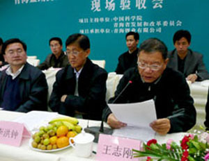 高技術(shù)產(chǎn)業(yè)化示范工程現(xiàn)場驗收會在西寧召開。會議由中國科學(xué)院計劃局副局長潘鋒主持,青海省人民政府副秘書長鐘通蛟,中國科學(xué)院基本建設(shè)局副局長王志剛,中國科學(xué)院蘭州分院副院長楊生榮,青海省海西州人民政府副州長劉小秦,西部礦業(yè)集團(tuán)公司總裁白永強,青海鹽湖研究所所長馬海州、黨委書記胡彥明和來自中國科學(xué)院、青海省政府、海西州政府及各相關(guān)單位的四十多位代表參加了會議。