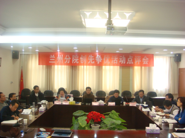 1月10日上午,蘭州分院黨組召開創(chuàng)先爭優(yōu)活動點評會,參加會議的有蘭州各單位黨委書記及創(chuàng)先爭優(yōu)活動辦公室的負責(zé)同志,分院黨組書記、創(chuàng)先爭優(yōu)活動領(lǐng)導(dǎo)小組組長謝銘主持會議并對各單位進行點評。會議首先學(xué)習(xí)了中央和院黨組關(guān)于開展點評工作的文件精神和要求,詳細聽取了各單位開展創(chuàng)先爭優(yōu)活動取得的成效、存在的問題和下一步工作思路,總結(jié)交流了創(chuàng)先爭優(yōu)活動的主要做法和取得的階段性成效,對下一步工作進行部署和安排。