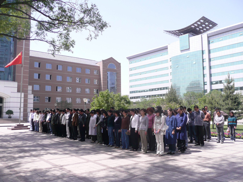 5月19日下午14時28分,隨著防空警報在城市上空的鳴響,我所參加默哀活動的全體人員,在半降的國旗下,面向南方默哀3分鐘,沉痛悼念四川汶川大地震遇難者。 為表達全國各族人民對四川汶川大地震遇難同胞的深切哀悼,國務(wù)院18日發(fā)布公告,決定2008年5月19日至21日為全國哀悼日。5月19日下午14時28分,中國全國人民為四川汶川大地震遇難者默哀3分鐘,汽車、火車、艦船鳴笛,防空警報鳴響。 全國各地的人們用同一種方式和災區(qū)人民心連心,在舉國同悲的時刻,讓我們祝愿地震中的遇難者安息,全國人民將齊心協(xié)力和災區(qū)的人民一起抗震救災,幫助他們早日重建家園。