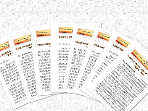 舉辦“兩學(xué)一做”學(xué)習(xí)教育主題征文活動是中國科學(xué)院蘭州分院系統(tǒng)深入推進“兩學(xué)一做”學(xué)習(xí)教育的“四個抓手”之一,自啟動以來,得到系統(tǒng)各單位黨委和廣大黨員干部積極響應(yīng)。目前,已收到蘭州分院系統(tǒng)各單位黨委書記、副書記“兩學(xué)一做”微體會及短文17篇,做到了黨委領(lǐng)導(dǎo)人員人人參與。